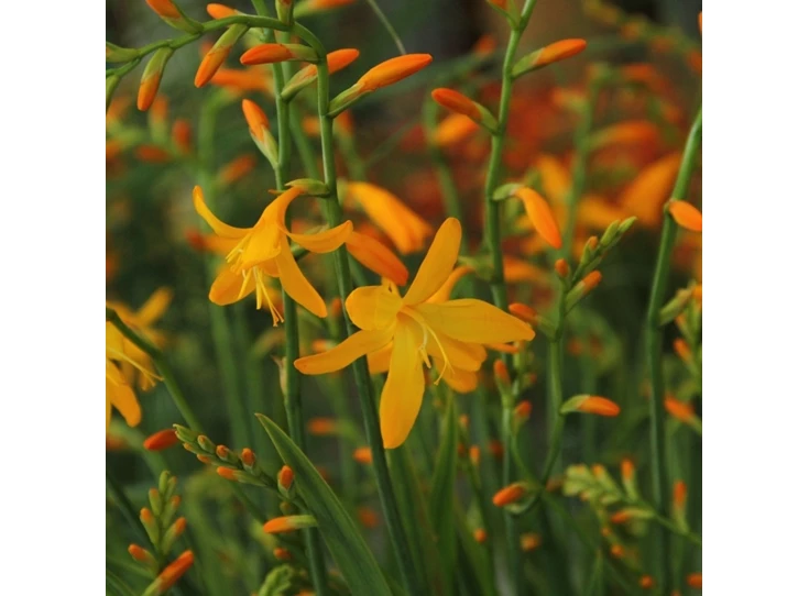 Ontdek de prachtige Crocosmia 'George Davidson', een schitterende bloeiende plant die een levendige uitstraling biedt aan jouw tuin of terras. Deze opvallende aanwinst voegt een stralende kleur toe met zijn felgele bloemen, die in de zomer bloeien en jouw buitenruimte tot leven brengen.